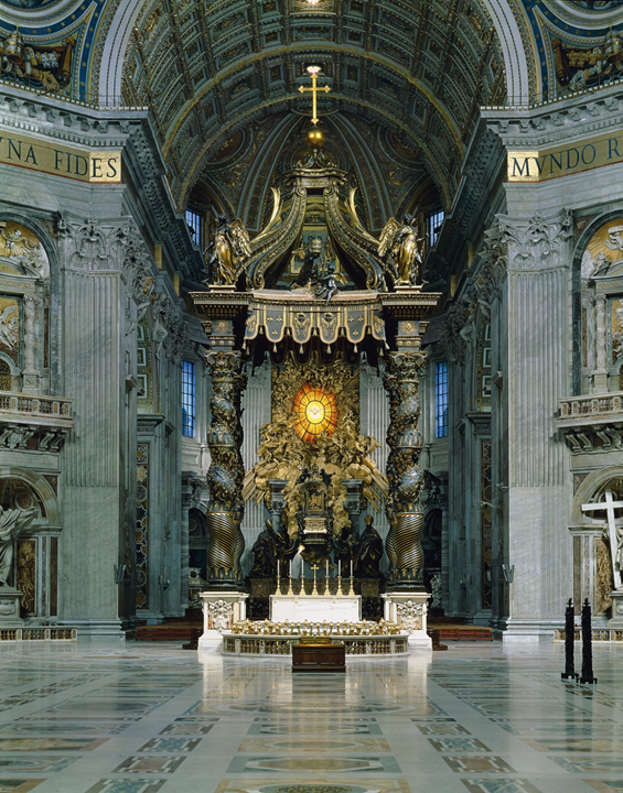 Figure 24-5 GIANLORENZO BERNINI, baldacchino, Saint Peter’s, Vatican City, Rome, Italy, 1624–1633. Gilded bronze, 100’ high.