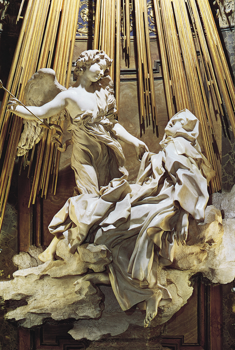 Figure 24-7 GIANLORENZO BERNINI, Ecstasy of Saint Teresa, Cornaro Chapel, Santa Maria della Vittoria, Rome, Italy, 1645–1652. Marble, height of group 11’ 6”.