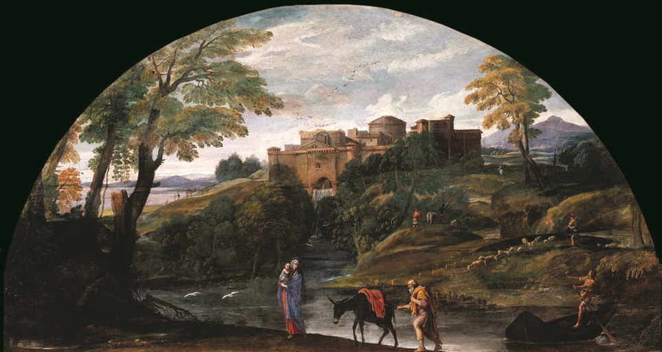 Figure 24-15 ANNIBALE CARRACCI, Flight into Egypt, 1603–1604. Oil on canvas, 4’ x 7’ 6”. Galleria Doria Pamphili, Rome.