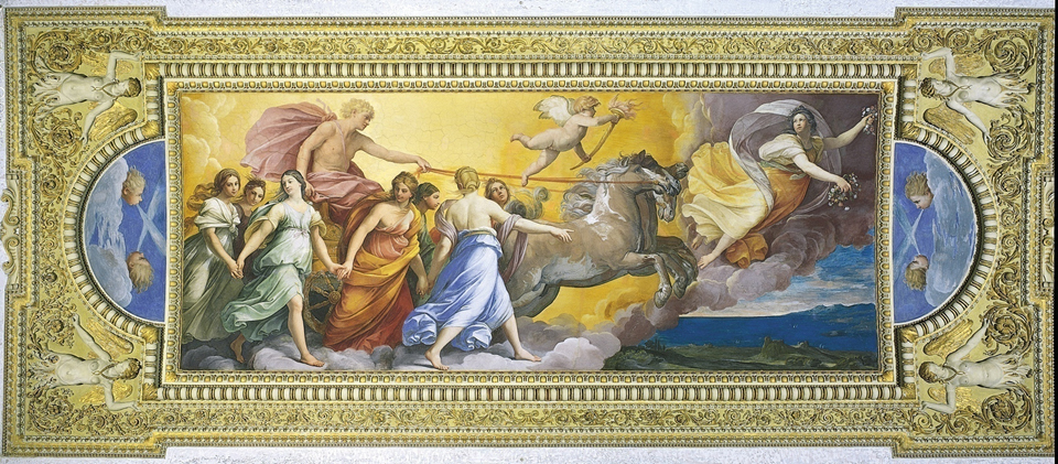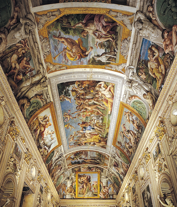 Figure 24-16 ANNIBALE CARRACCI, Loves of the Gods, ceiling frescoes in the gallery, Palazzo Farnese, Rome, Italy, 1597–1601.