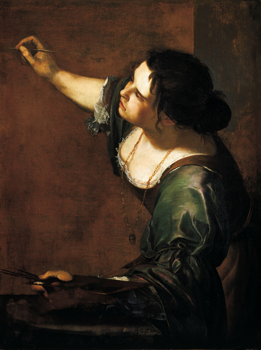 24-20 ARTEMISIA GENTILESCHI, Self-Portrait as the Allegory of Painting, ca. 1638–1639. Oil on canvas, 3’ 2 7/8” X 2’ 5 5/8”. Royal Collection, Kensington Palace, London.