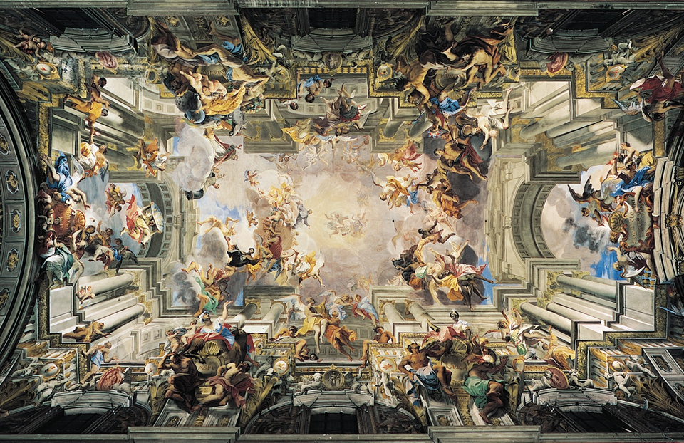 Figure 24-24 FRA ANDREA POZZO, Glorification of Saint Ignatius, ceiling fresco in the nave of Sant’Ignazio, Rome, Italy, 1691–1694.