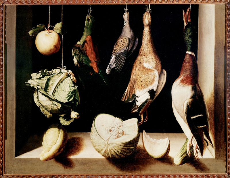 24-25 JUAN SÁNCHEZ COTÁN, Still Life with Game Fowl, ca. 1600–1603. Oil on canvas, 2’ 2 3/4” X 2’ 10 7/8”. Art Institute of Chicago, Chicago (gift of Mr. and Mrs. Leigh B. Block).