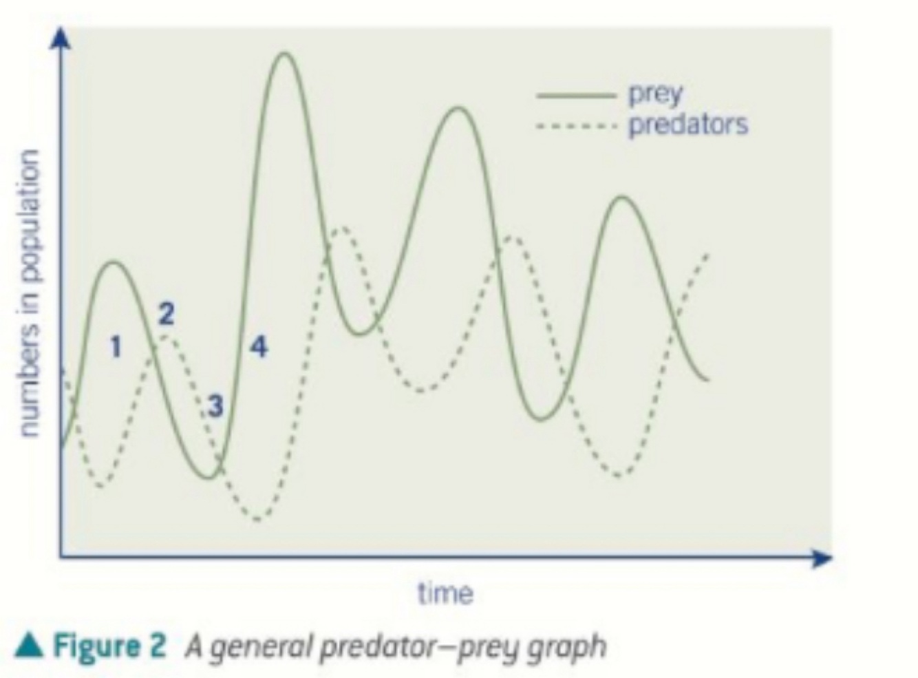 An increase in the prey population provides more food for the predators, allowing more to survive and reproduce. This in turn results in an increase in the predator population.