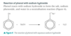 Benzene reacts + conc HNO3 (Nitric acid) = nitrobenzene + H2O