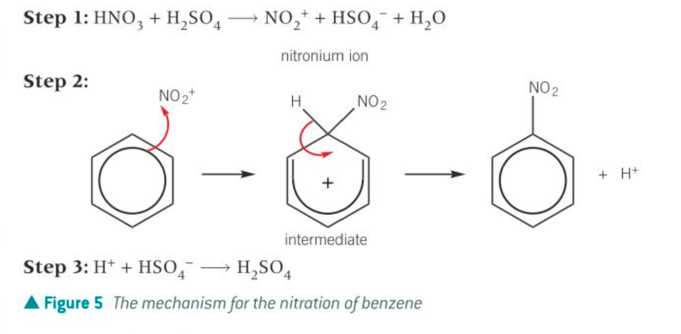 nitration of benzene mechanism? there are 3 steps…