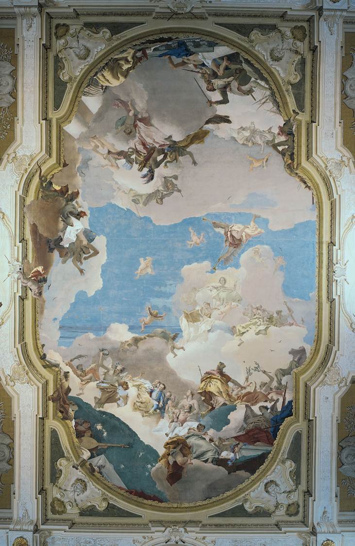 Figure 26-10 GIAMBATTISTA TIEPOLO, Apotheosis of the Pisani Family, ceiling fresco in the Villa Pisani, Stra, Italy, 1761-1762. Fresco, 77’ 1” X 44’ 3”.