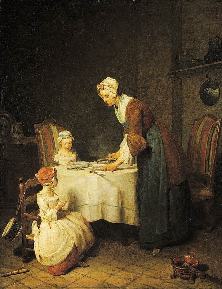 Figure 26-13 JEAN-BAPTISTE-SIMÉON CHARDIN, Saying Grace, 1740. Oil on canvas, 1’ 7” x 1’ 3”. Louvre, Paris.