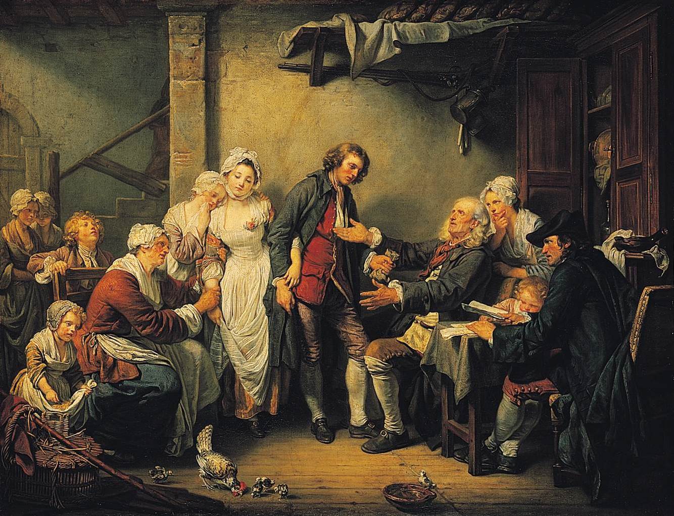 Figure 26-14 JEAN-BAPTISTE GREUZE, Village Bride, 1761. Oil on canvas, 3’ x 3’ 10 1/2”. Louvre, Paris.