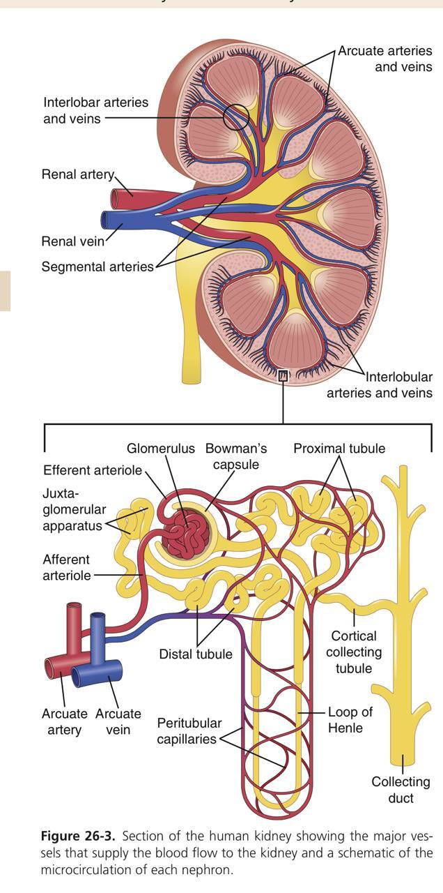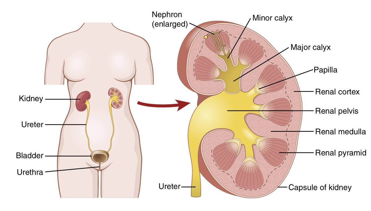 The hilum carries the renal artery and vein, lymphatics, nerve supply, and ureter