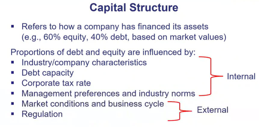 Proportion of debt and equity are influenced by (4) internal and (2) external factors: