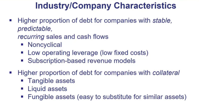 Companies with subscription-based revenue models are better able to support high proportions of debt than companies with pay-per-use revenue models.