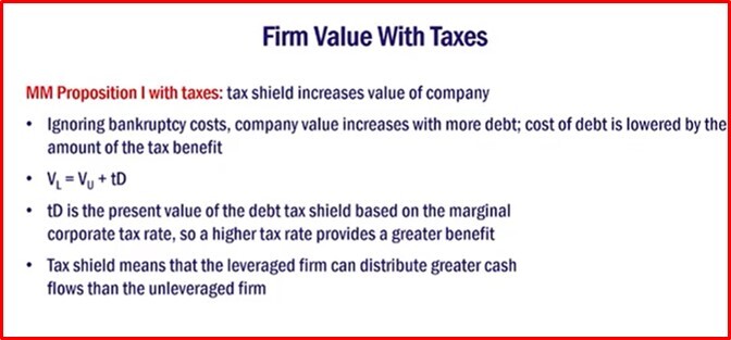 Remember the govt. subsidizes debt, if tax rate is high, higher the subsidy so higher the corp. tax rate, the more incentive there is for company to take on more debt.