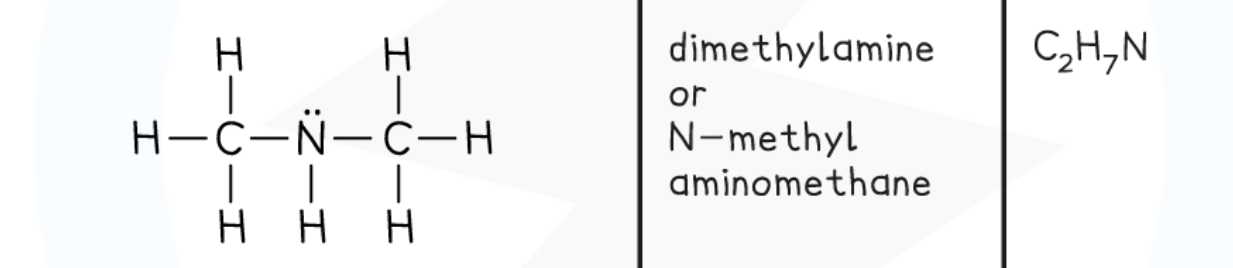 nitrogen atom attached to at least one straight or branched carbon chain (methyl amine)