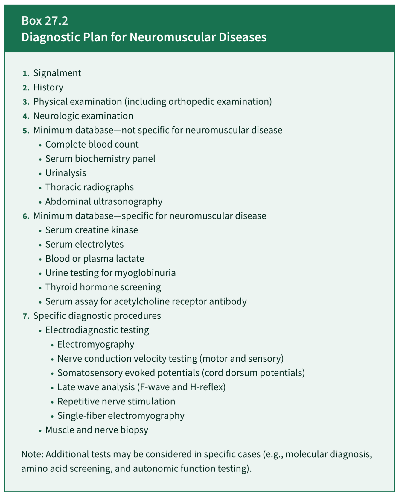 Outline 7 step diagnostic workup plan for neuromuscular disease