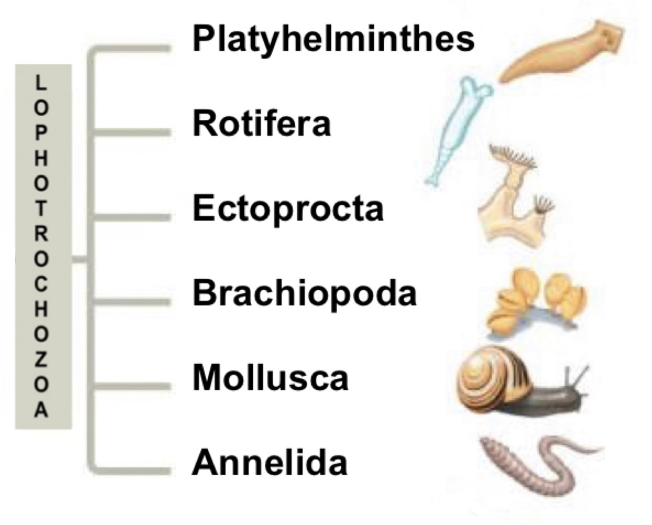 Has the widest range of animal forms!! Some have a lophophore which is a crown of tentacles used to feed. Some have a trochophore larva stage where they are free swimming using cilia. SOME HAVE NEITHER!!