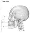 The head is divided into two parts: the cranium and the: