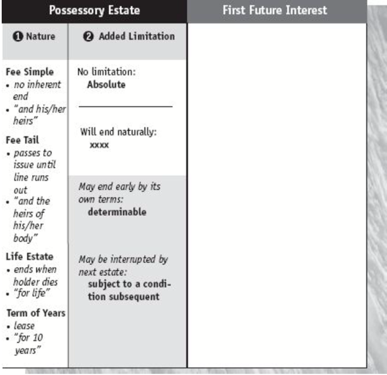 Fee tail, life estate, and term of years