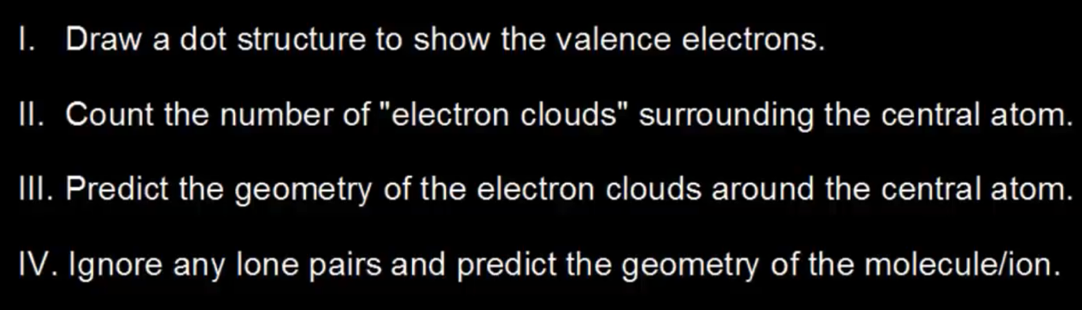Steps to predict geometrical structure of a molecule using VSEPR theory: