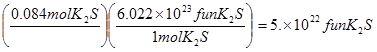 How many formula units are there in 0.084mol of potassium sulfide, K2S?