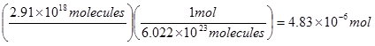 If a sample of thiourea (CH4N2S) contains 2.91 x 1018 molecules, how many moles is this equal to?