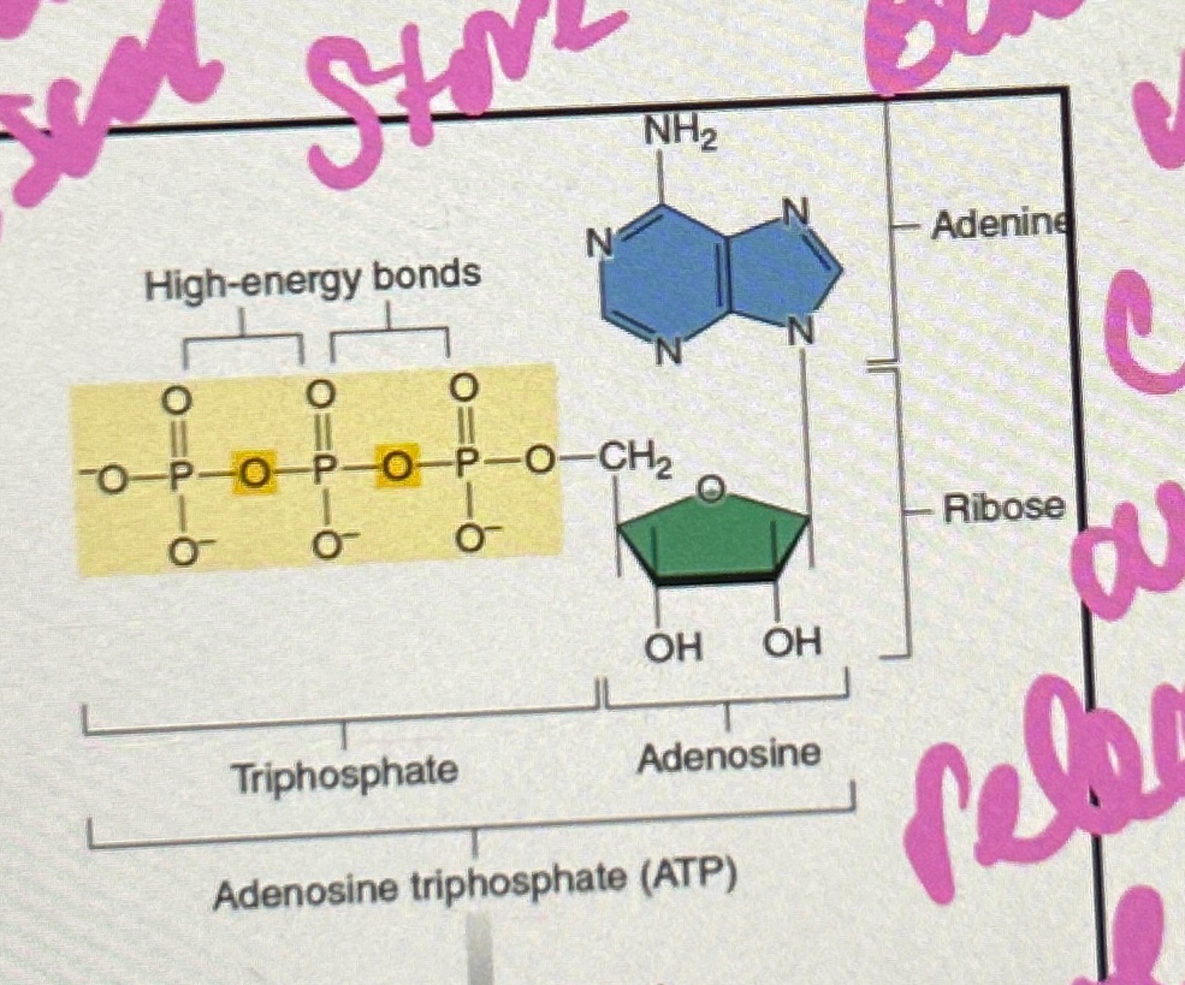 Adenosine tri phosphate group and locations of high energy chemical bonds