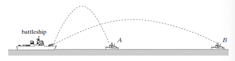 the parabolic trajectories shown, which ship gets hit first?