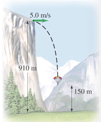 horizontally off the top of El Capitan with speed 5.0 m/s