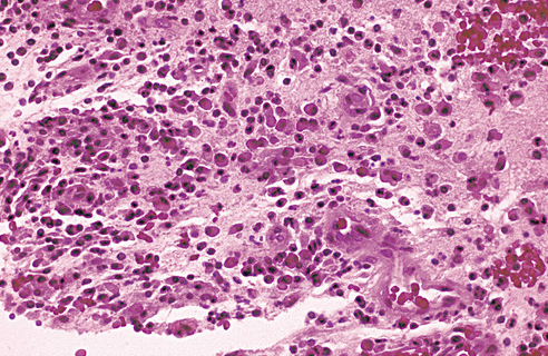 Secondary acute inflammatory changes within a periapical granuloma.