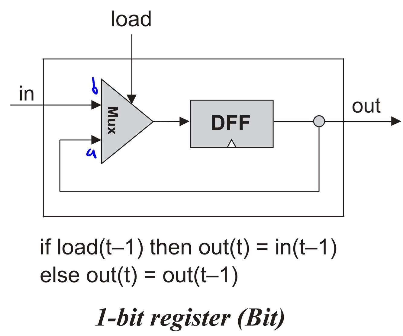 A 1 bit register.