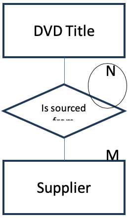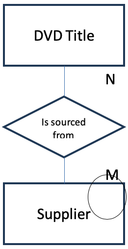 Explain where this diagram shows that a supplier can supply many DVD titles.