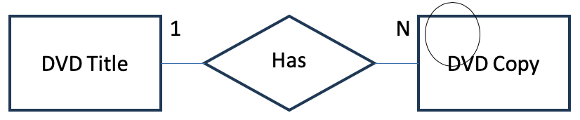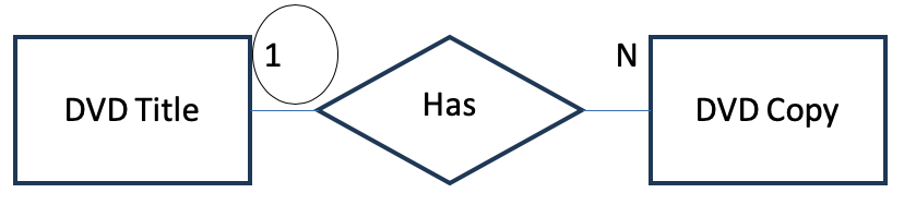 Explain where this diagram shows that a DVD copy relates to one title only.