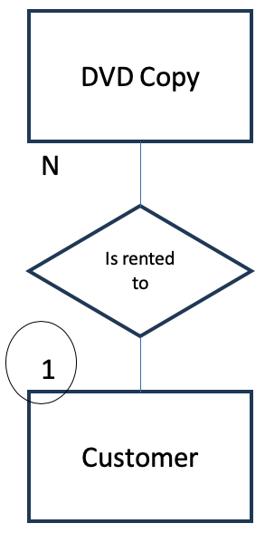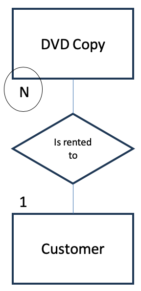 Explain where this diagram shows that a DVD copy can be rented to one customer at a time.