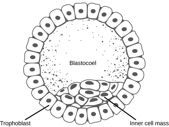 a hollow ball of cells with a fluid-filled inner cavity (blastocoel)
