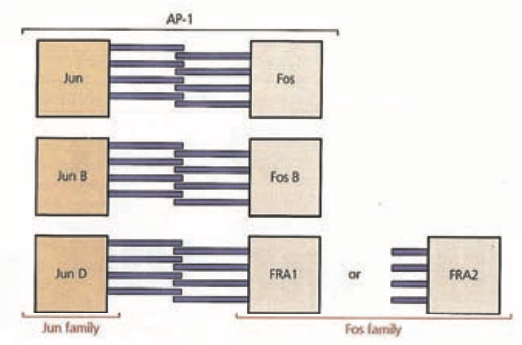 As TPA is a tumor promoter and the AP-1 complex binds to the TPA response element, an association of AP-1 with carcinogenesis was implicated early after this property was characterized. The first members of AP-1 identified, c-Jun and c-Fos were able to transform normal cells in culture to cancer cells and are frequently overexpressen in tumor cells