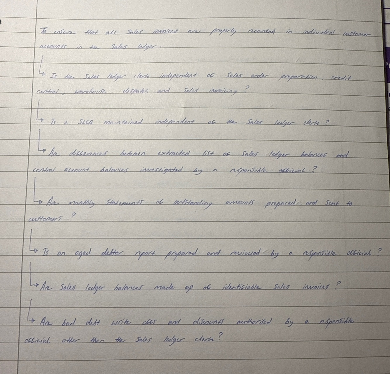 An internal control questionnaire for the sales system (Yes or No).