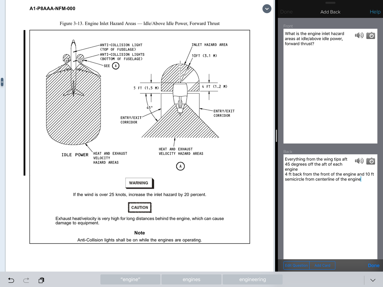 Everything from the wing tips aft 45 degrees off the aft of each engine 4 ft back from the front of the engine and 10 ft semicircle from centerline of the engine