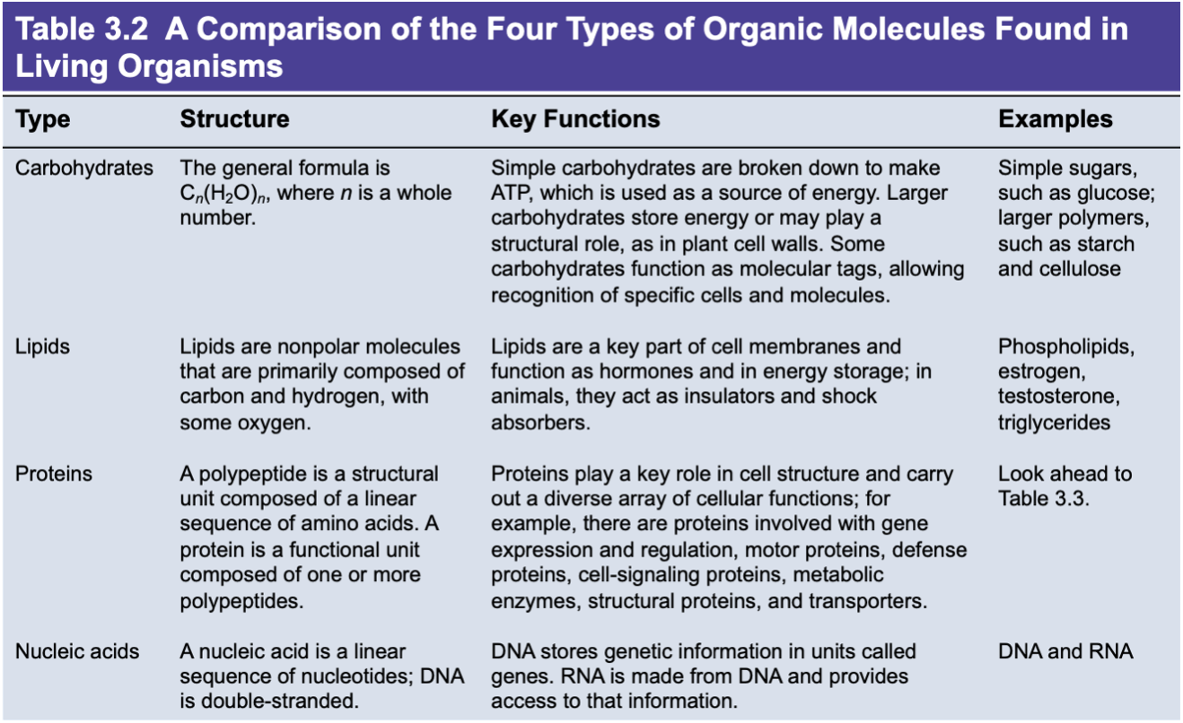 What are 4 major classes of organic molecules?!?!?!?