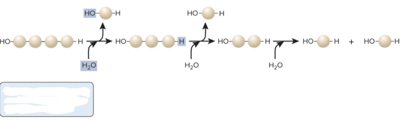 This process is the breakdown of a polymer through hydrolysis reactions. The polymer in this figure is being broken down one monomer at a time.