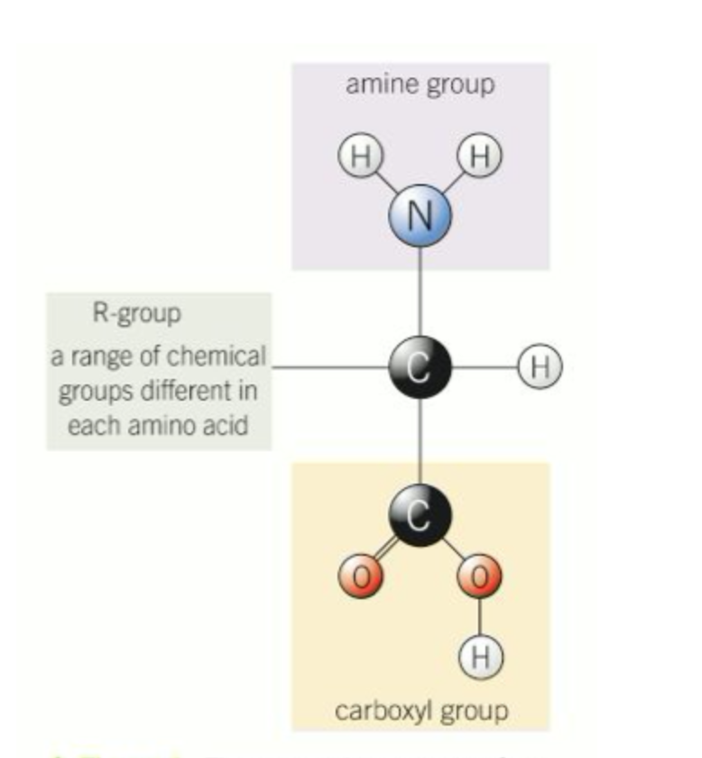 Different R-groups (variable groups) result in different amino acids.