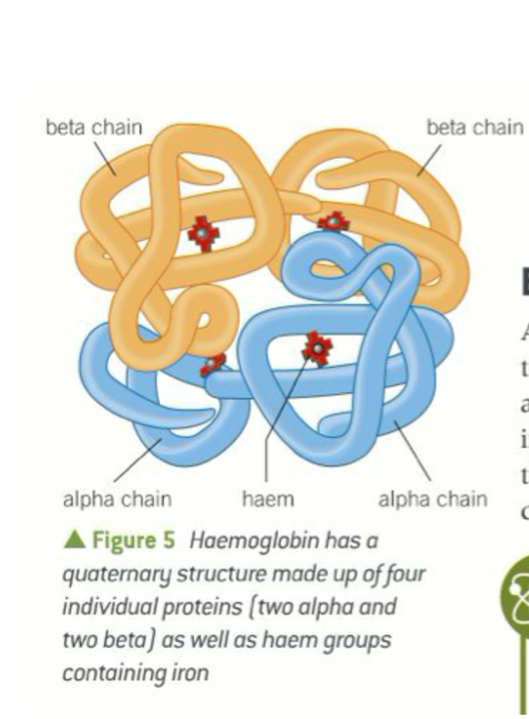 Haemoglobin, a protein required for oxygen transport in the blood, has four subunits, made up of two sets of two identical subunits (Figure 5).