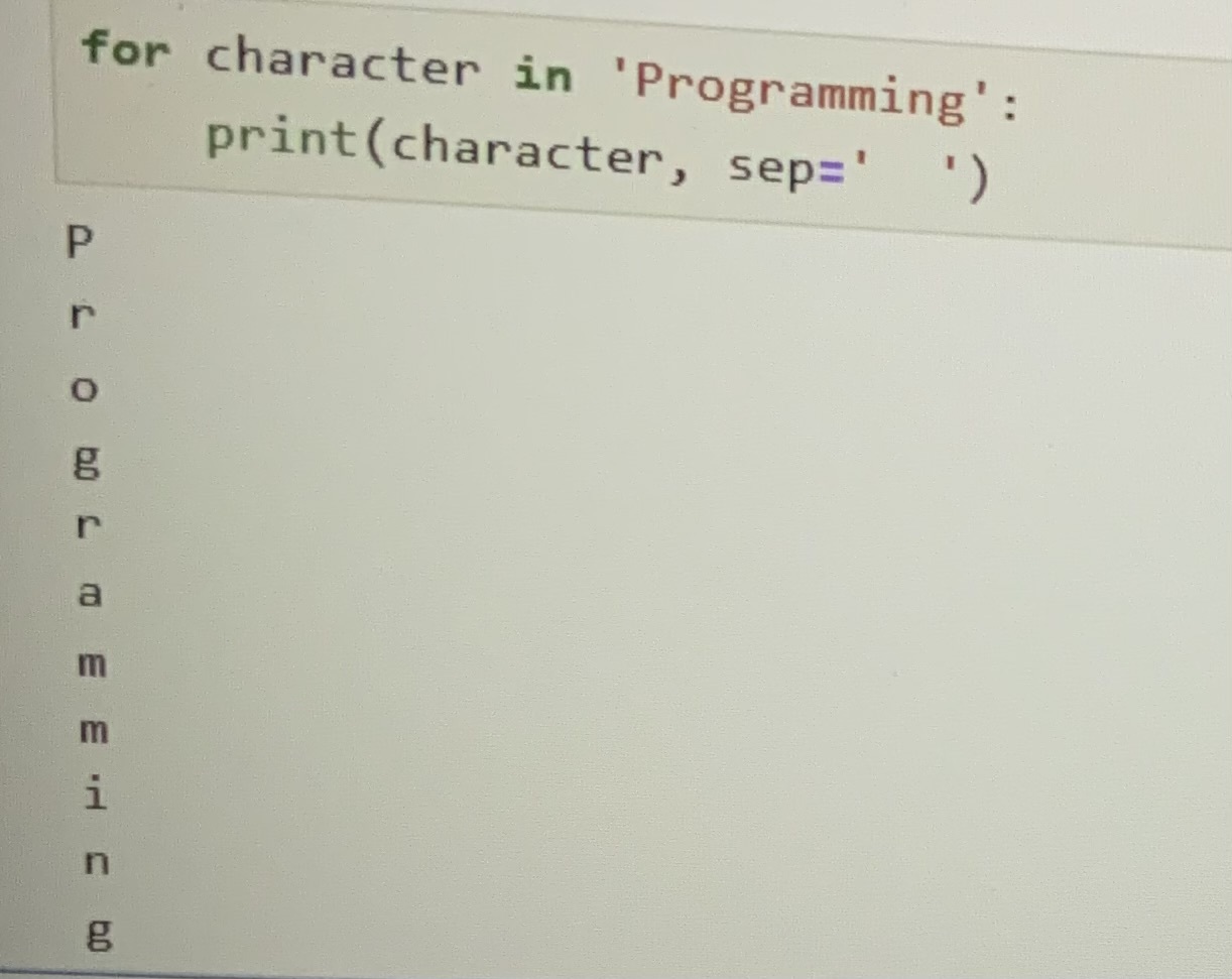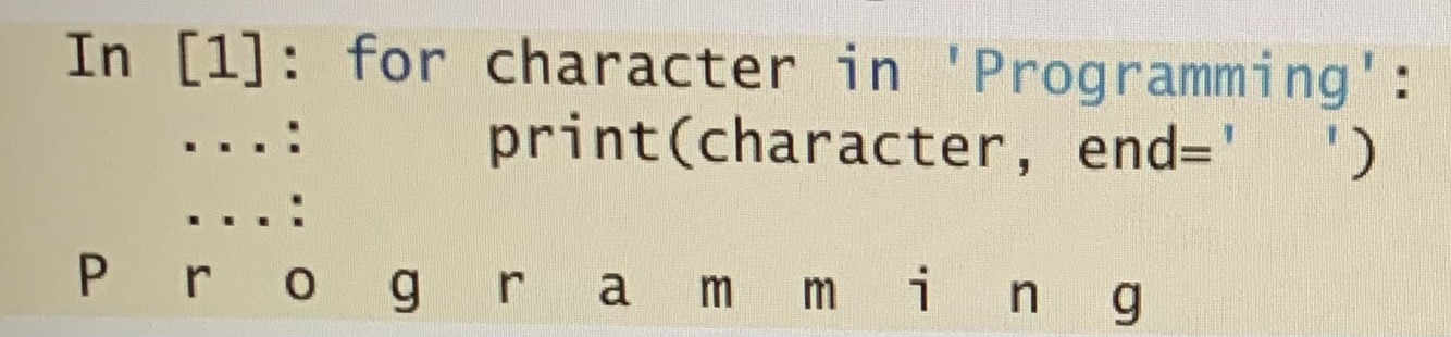 Here the for statement will result vertically by default unless we add the end keyword that terminates the string onto one line