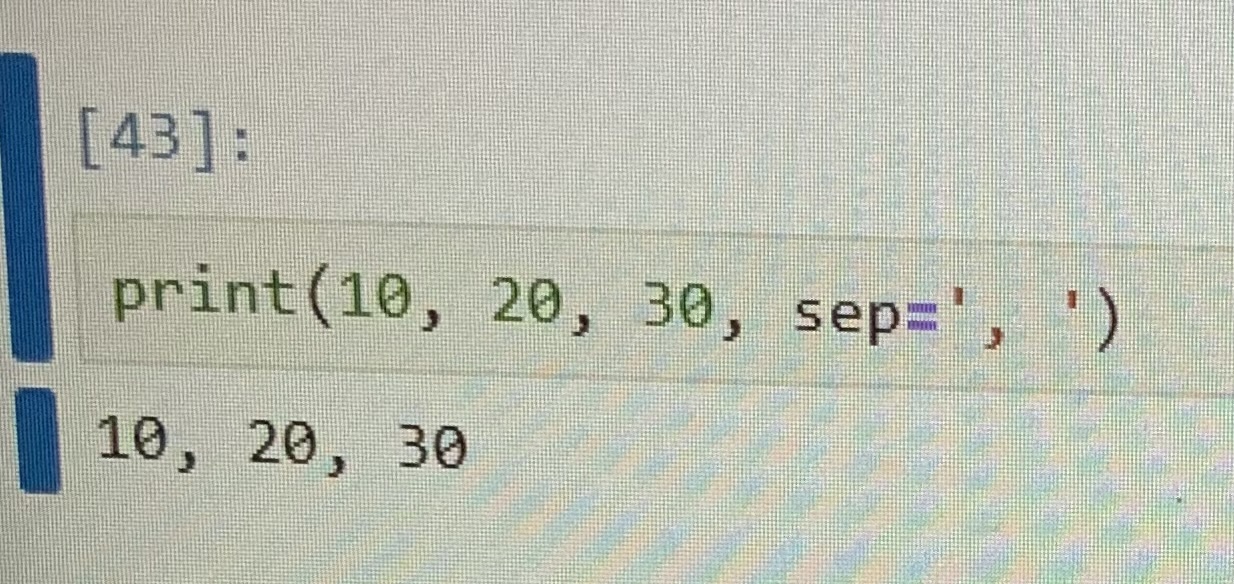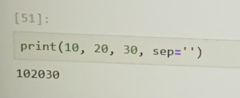 When using sep (short for separator) to specify the string that appears between the items that print displays