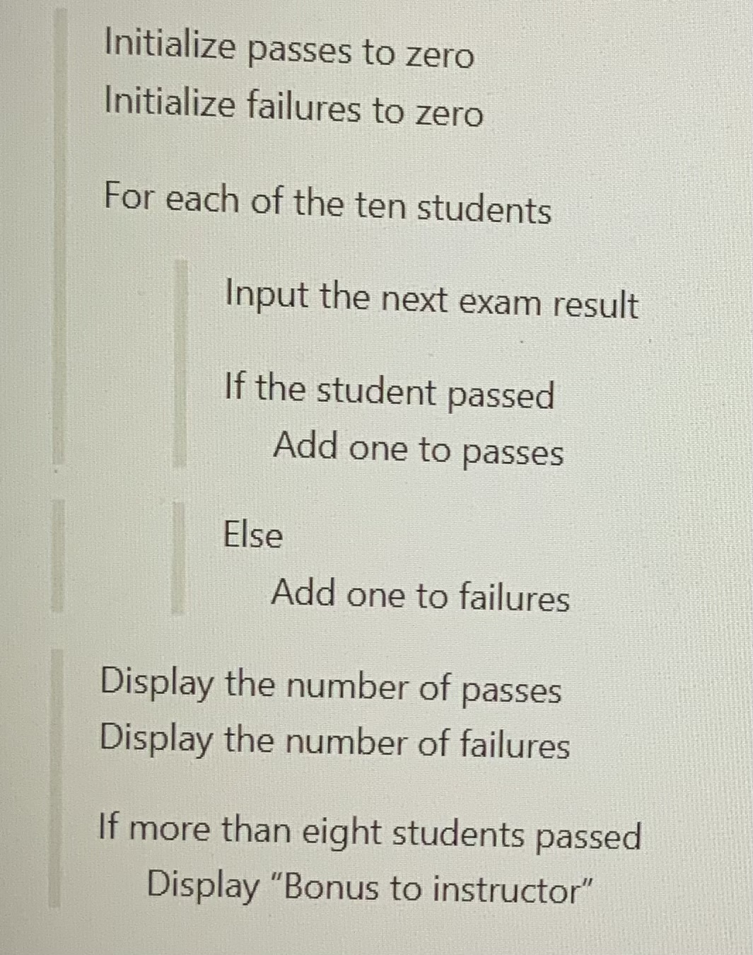 - We’ll use 2 counters - one to count the number of students who passed the exam and one to count the number of students who failed