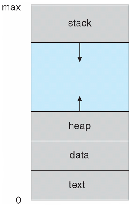 An operating system executes a variety of programs: Batch system – jobs Time-shared systems – user programs or tasks Textbook uses the terms job and process almost interchangeably The program code, also called text section Current activity including program counter, processor registers Stack containing temporary data Function parameters, return addresses, local variables Data section containing global variables Heap containing memory dynamically allocated during run time