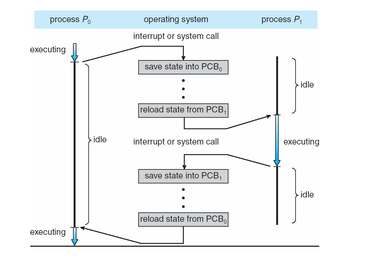 When CPU switches to another process, the system must save the state of the old process and load the saved state for the new process via a context switch
