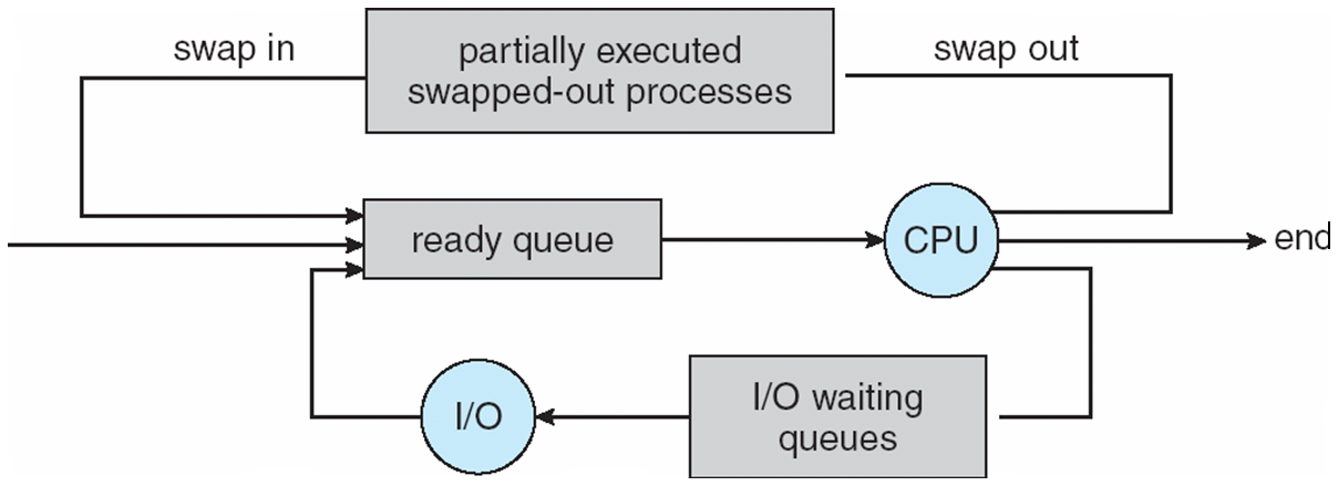 Medium-term scheduler can be added if degree of multiple programming needs to decrease