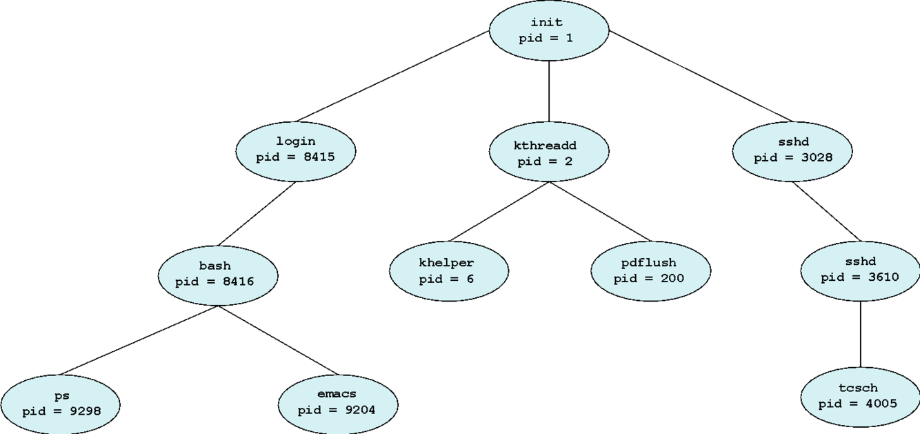 Parent process create children processes, which, in turn create other processes, forming a tree of processes