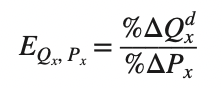 P is the price of the good and E is the own price elasticity of demand for the good.