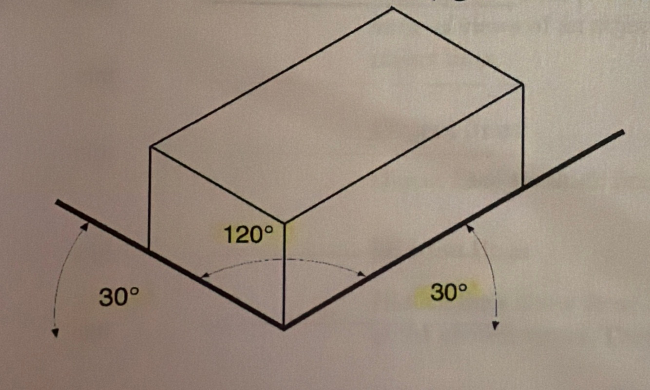 All lines are drawn either vertically or at 30 degrees to the horizontal. The lengths along the 30 degree axes are drawn to full scale
